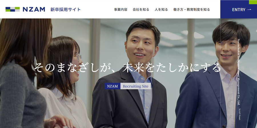 「そのまなざしが、未来をたしかにする」。自社の求める人物像とカルチャーを、力強い言葉とビジュアルで体現したNZAM様の新卒採用サイト。情報設計からコピーライティング、撮影まで一貫して支援した制作をご紹介します。