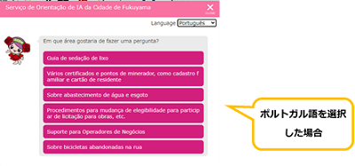 【AIチャットボット「福山市AI案内サービス」イメージ】