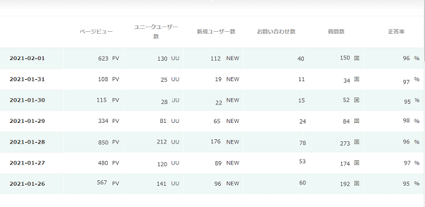 WEBサイトのアクセス解析同様、チャットボットを設置しているページのページビュー、ユニークユーザー、新規訪問者数、再訪問者数を確認することができるようになりました。期間指定で抽出することができ、画面表示、CSVエクスポートすることも可能です。